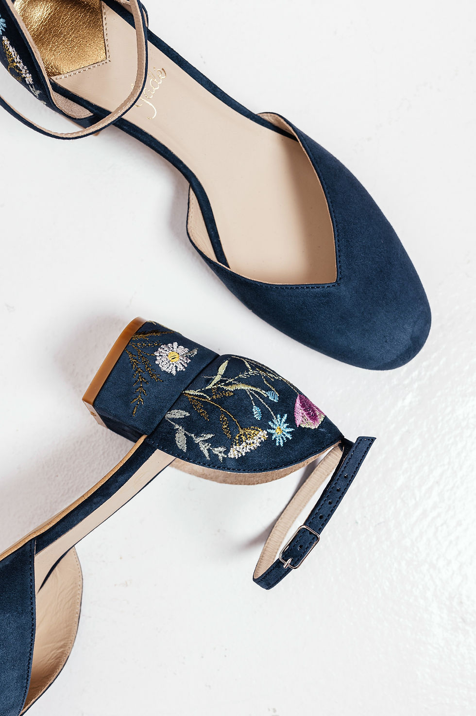 Jasmine - Navy Blue Suede with Meadow Embroidery
